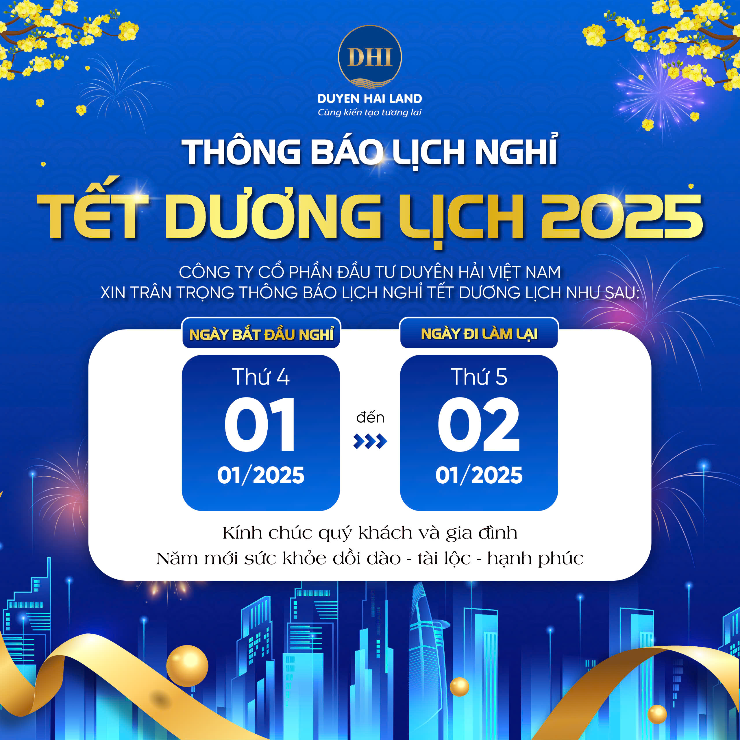 DUYÊN HẢI LAND THÔNG BÁO LỊCH NGHỈ TẾT NGUYÊN ĐÁN 2025