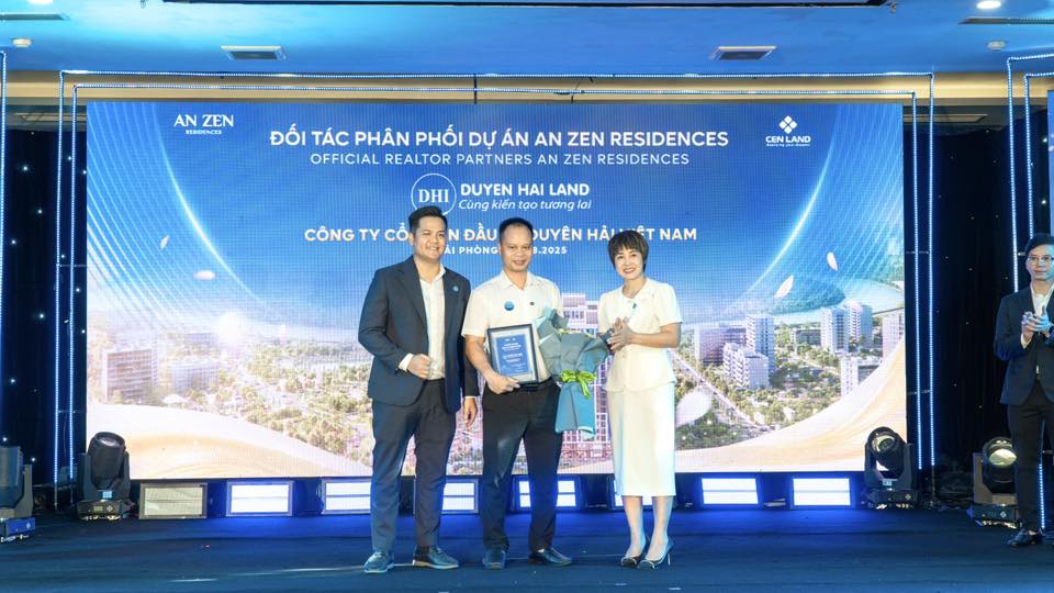 Trong khuôn khổ buổi lễ, Duyên Hải Land đã vinh dự được trao chứng nhận Đại lý phân phối chính thức dự án An Zen Residences Hải Phòng. Đây là dấu mốc quan trọng, khẳng định sự hợp tác bền chặt giữa Chủ đầu tư và Duyên Hải Land trong việc lan tỏa những giá trị sống đẳng cấp mà dự án mang lại.